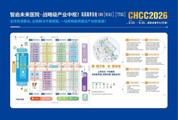 由筑医台、国药励展、中国医学装备协会医院建筑与装备分会、北京筑而瑞科技有限公司联合多家权威机构共同举办的“第二十七届全国医院建设大会暨国际医院建设装备及管理展览会”(简称 CHCC)将于 2026年5月23-25日在天津国家会展中心隆重召开。